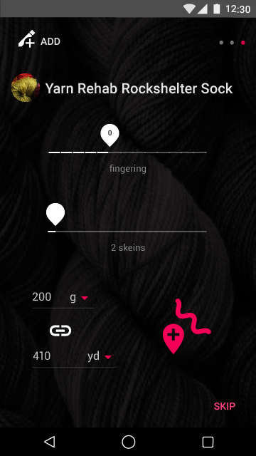 I wanted the interface to be friendly, error-proof and appealing. Nobody likes typing on a phone, especially older users standing in a yarn shop on a windswept rock on a sheep-lined shore, so I replaced as much typing as possible with other input types.